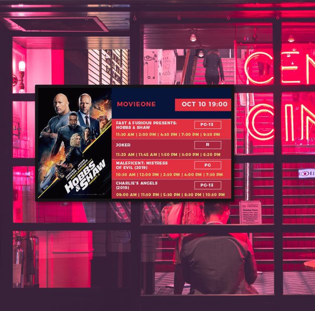 Movie theatre are a place where digital signage can be put to best use. Right from movie posters, movie schedules to item prices at the Cafeteria, the screens can be managed with ease and instant updates can be made as and when needed.